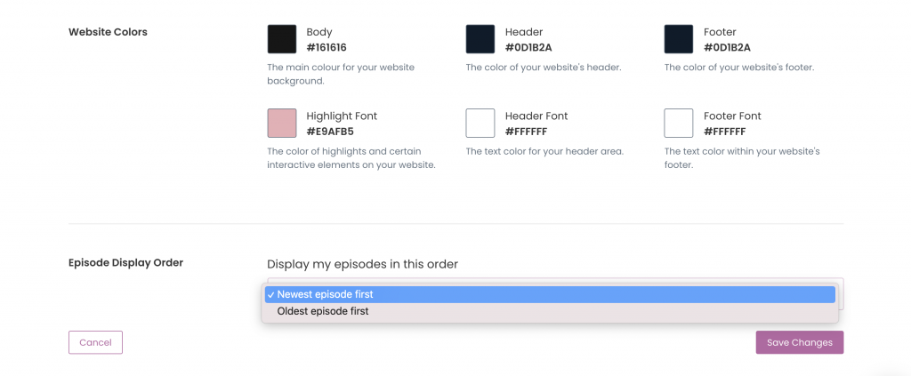 Gain full control over how your audience listens to your podcast episodes with new customizable episode settings specific to your website. You can now sort the ordering of your episodes by either oldest first or newest first.